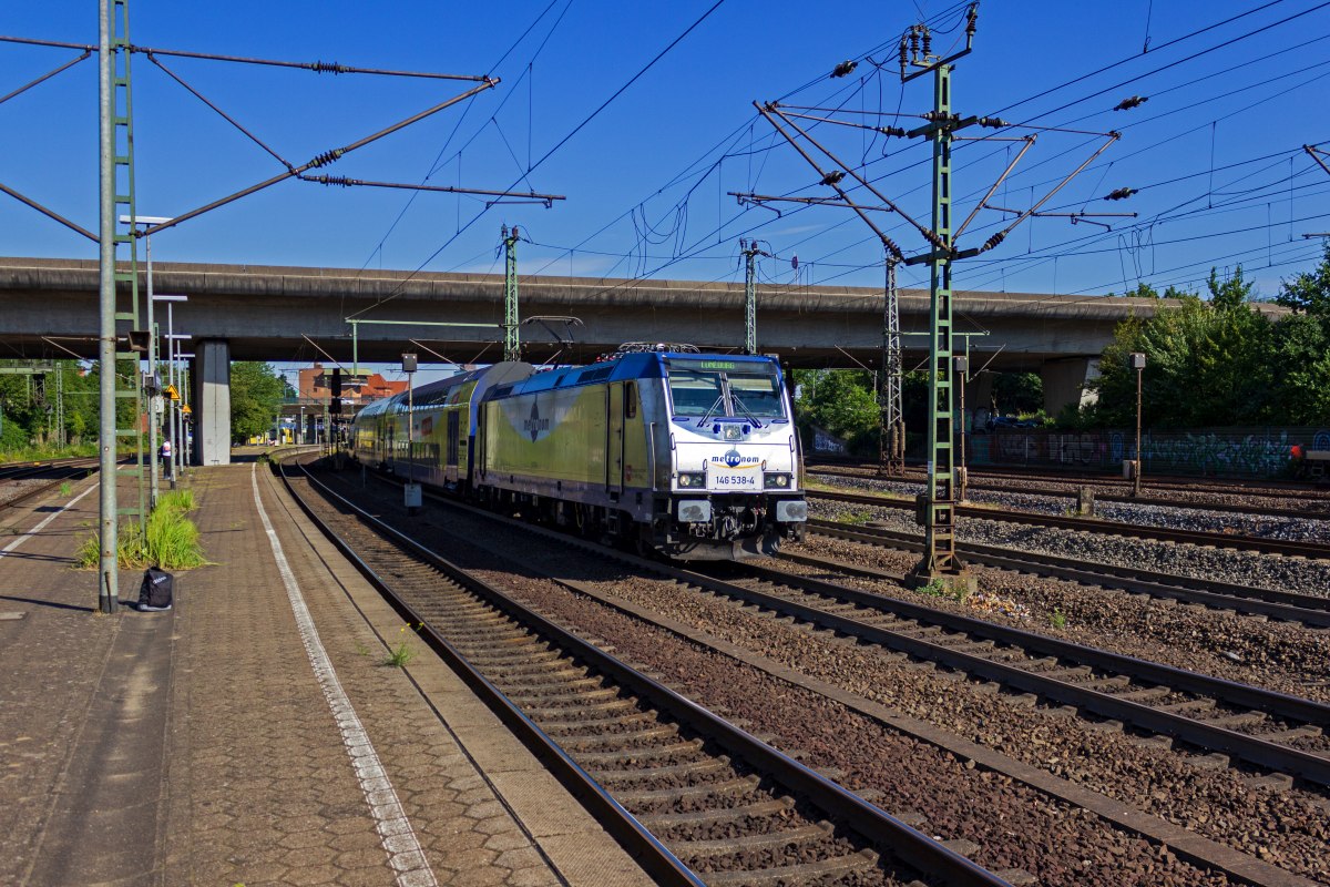 146 522 ist eine der wenigen Loks, die ursprünglich für den - mittlerweile lange eingestellten - InterConnex-Verkehr beschafft wurden. Im Jahr 2020 machte sich die Lok bei metronom nützlich und brachte am 05.08.2020 einen Regionalzug in Richtung Hamburg.