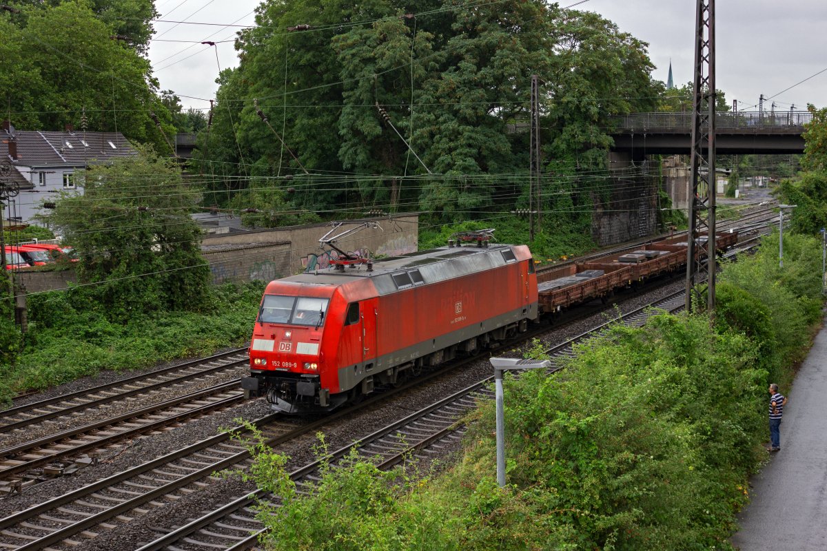 152 190 fährt am 21.08.14 in Bremen ein. Bei der Lok, die ursprünglich die Betriebsnummer 152 032 erhalten sollte, handelt es sich um einen Einzelgänger, der zeitweise mit abweichenden elektrischen Komponenten ausgerüstet wurde. Daher rührt auch die abweichende Nummer, die fortlaufende Nummerierung reicht nur bis zur Nummer 170.