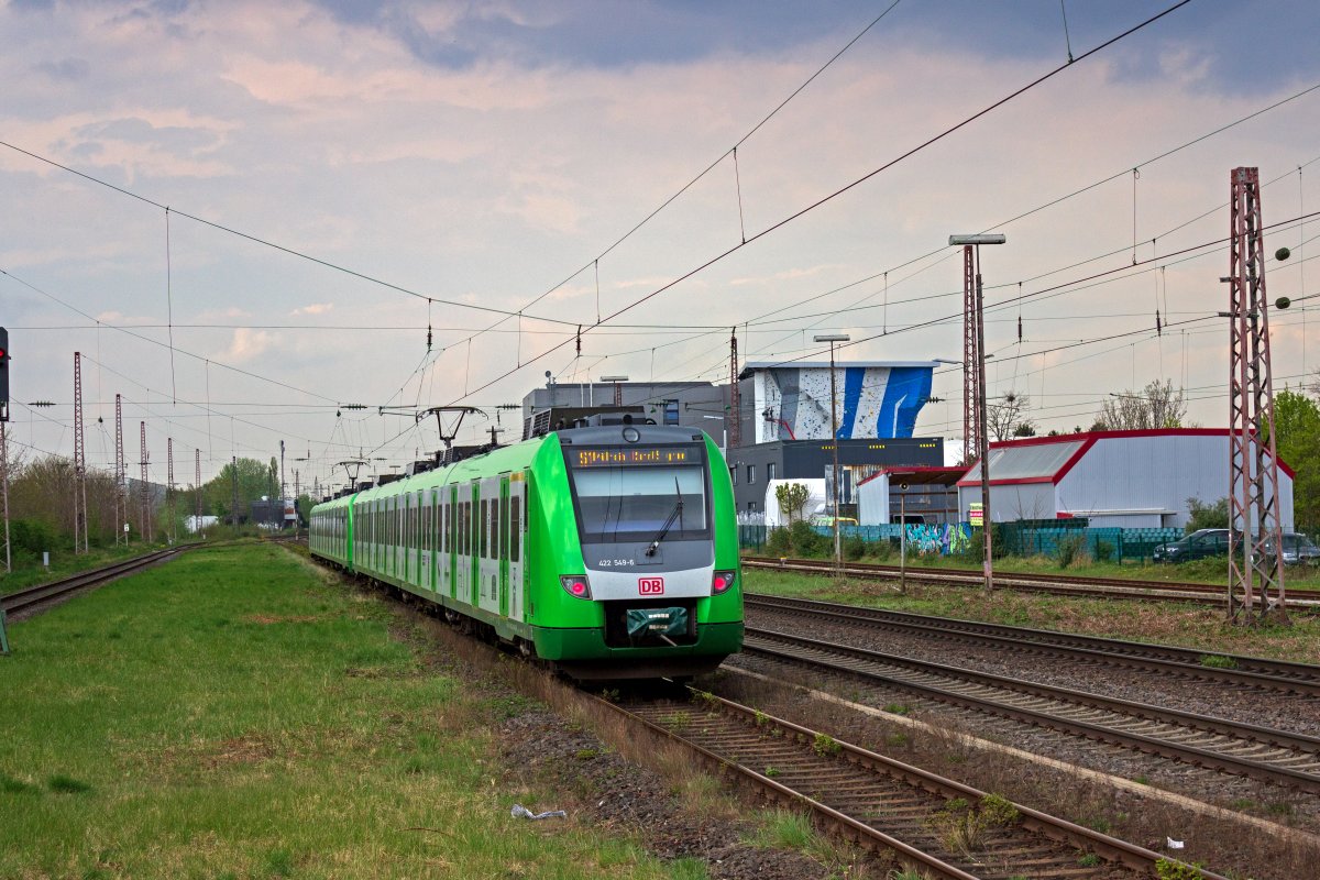 422 064 und ein weiterer Triebzug der Baureihe 422 erreichen als Zug der Linie S6 Düsseldorf-Rath.