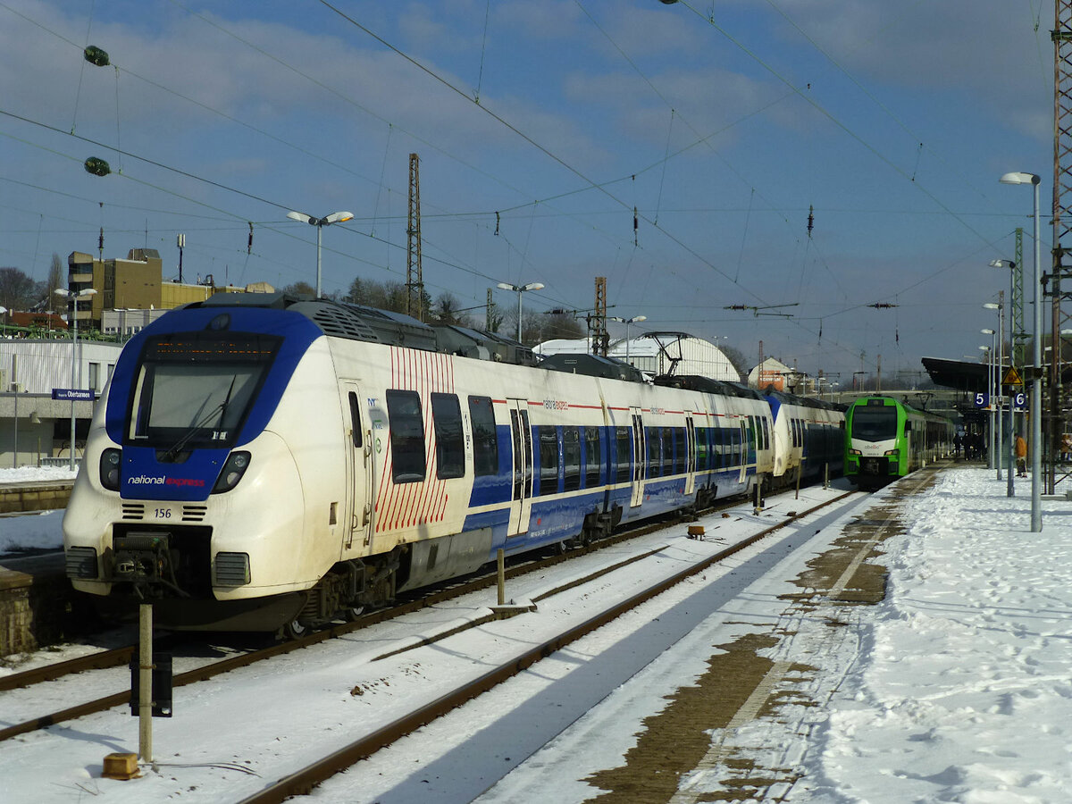Aufgrund der Vollsperrung der Frankenwaldbahn im Sommer '16 verkehrt die hier am 19.5. in Saalfeld wartende RB nur bis Lichtenfels statt wie sonst nach Bamberg. Im Hintergrund ABRM 442 311.