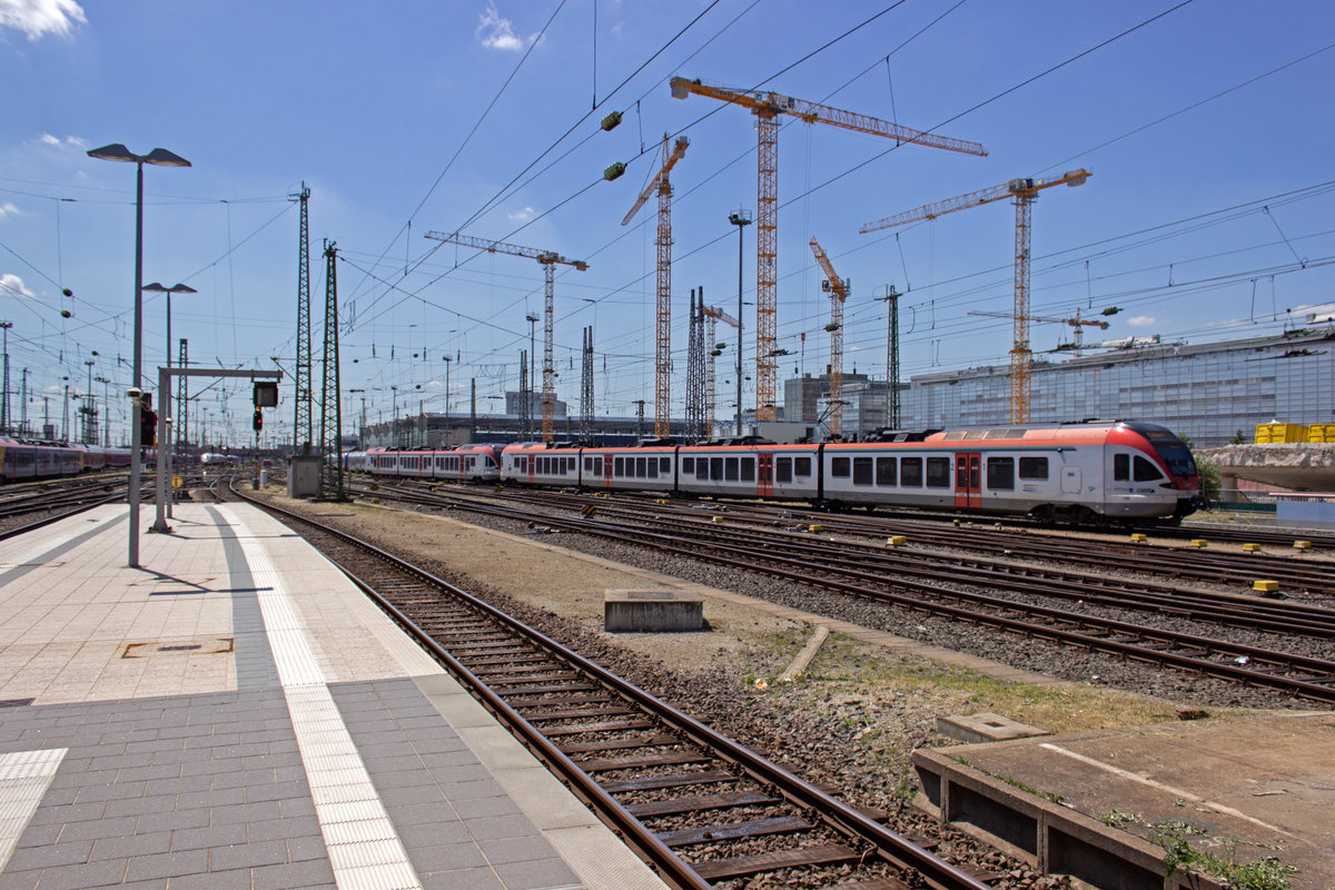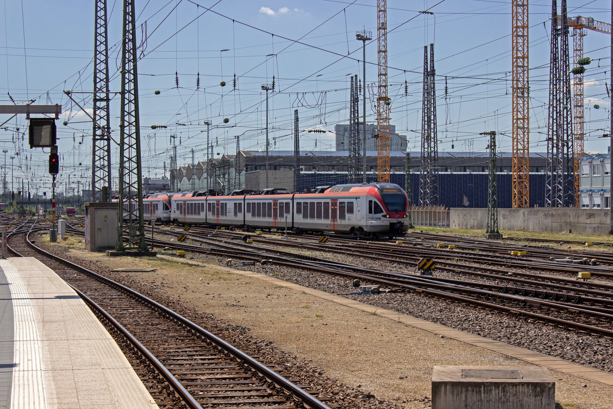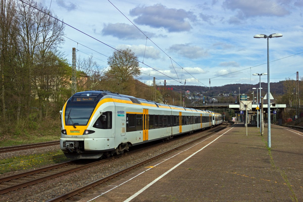 ET 232102 vorne und 222103 hinten bilden am 12.7.19 den RE16, der hier auf dem Weg nach Essen am Wittener Hauptbahnhof hält.