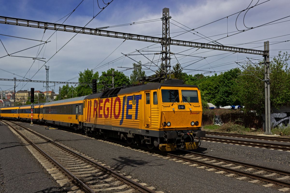 162 112 mit RegioJet 1015 nach Návsí an der slowakischen Grenze in Praha-Libeň.