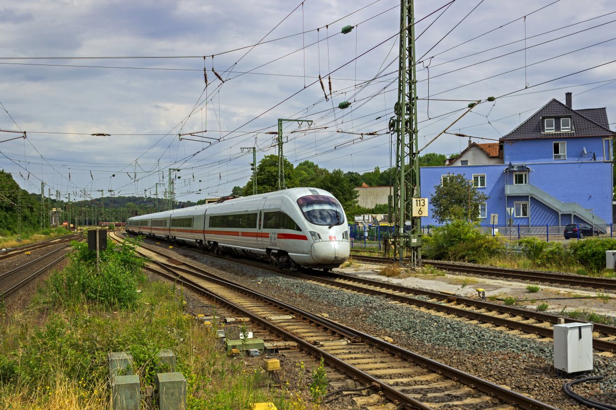 Wie so oft, ließ sich auch am 24.09.25 ein ICE auf dem südlichen Berliner Außenring blicken. 411 077, der noch den grünen Streifen mit Hinweis auf die Klimafreundlichkeit der Bahn trägt, war vermutlich als Umleiter unterwegs, da auf der Anhalter Bahn in Richtung Leipzig Ende September längere Bauarbeiten starteten.