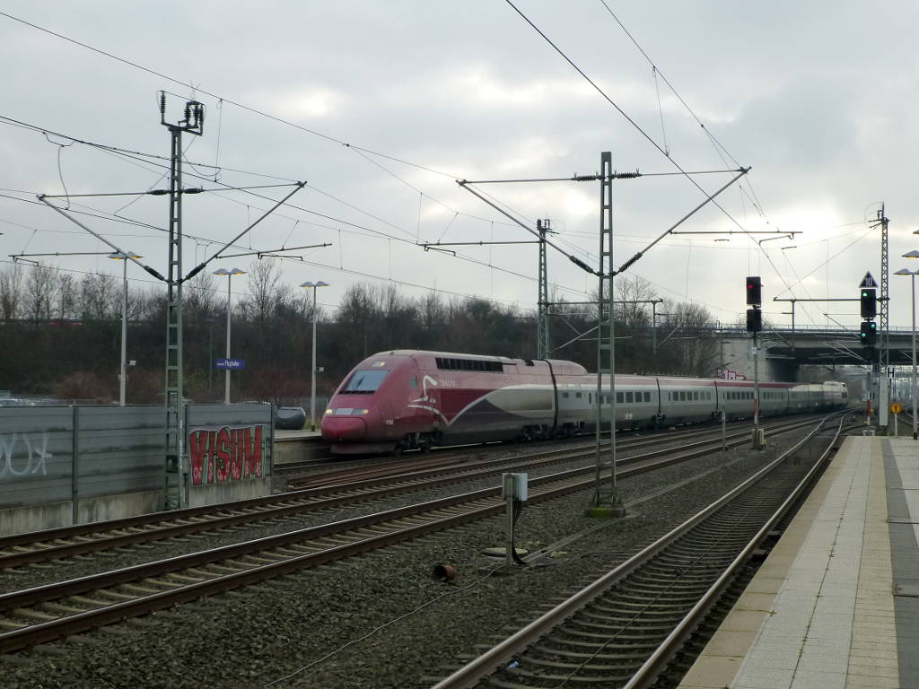 Ein 403 durchfährt auf dem Weg nach Dortmund am 28.12.16 mit hoher Geschwindigkeit den Düsseldorfer Flughafenbahnhof.