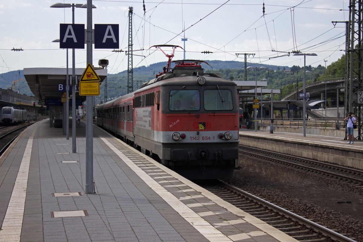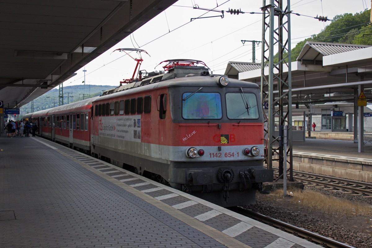 Vor der Kulisse des Fort Großfürst Konstantin (eines der zahlreichen militärischen Gebäude in Koblenz) verlässt 1142 654 Koblenz, um ihre Fahrt via Rechte Rheinstrecke in Richtung Diepholz fortzusetzen.