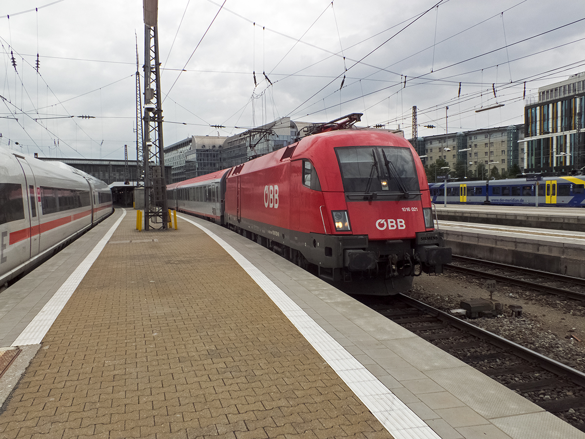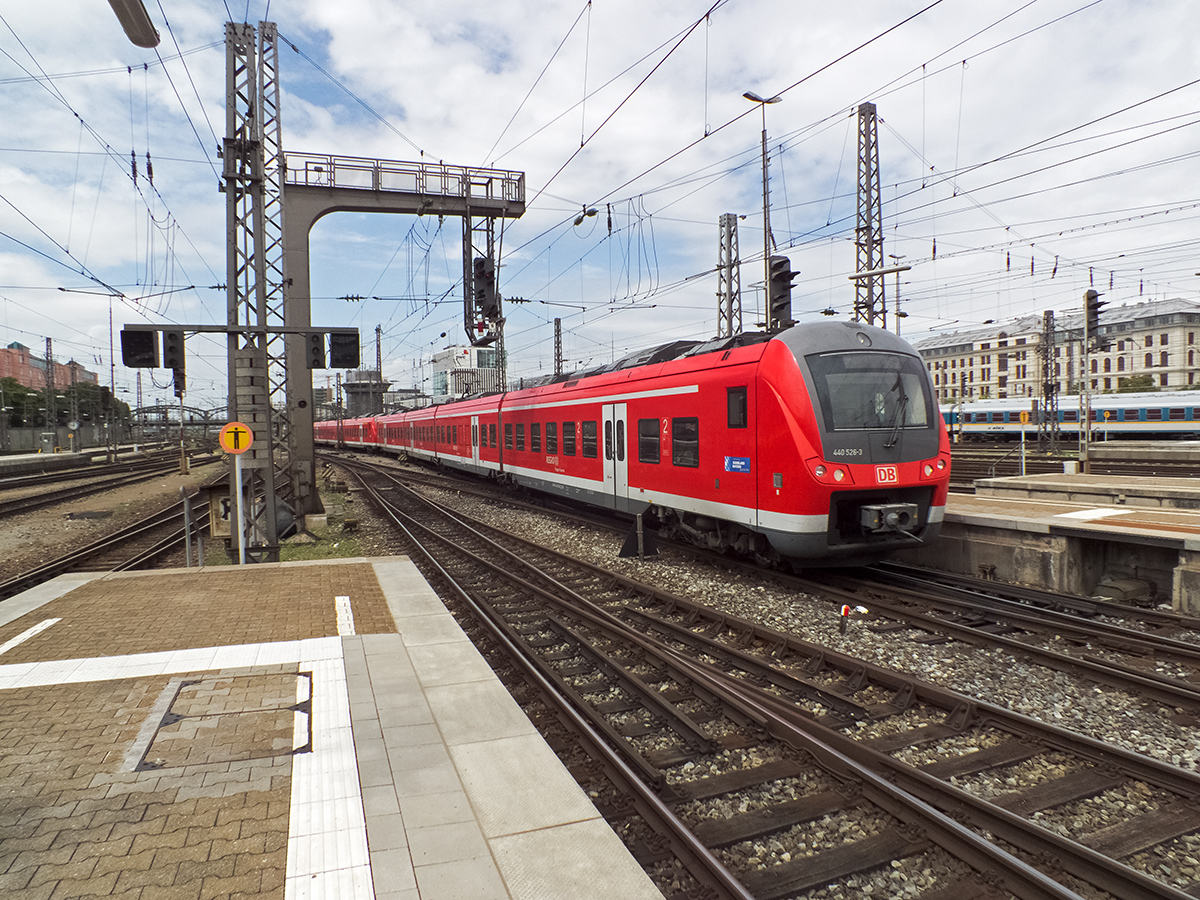 Ein weiterer Velaro: 407 011 und 015 fahren am 07.08.14 als ICE aus Münster in München ein. 407 011 hat offenbar die schon seit Jahren bei den anderen ICEs bekannten Probleme mit der Bugklappe, geflügelt wird hier nämlich nicht.
