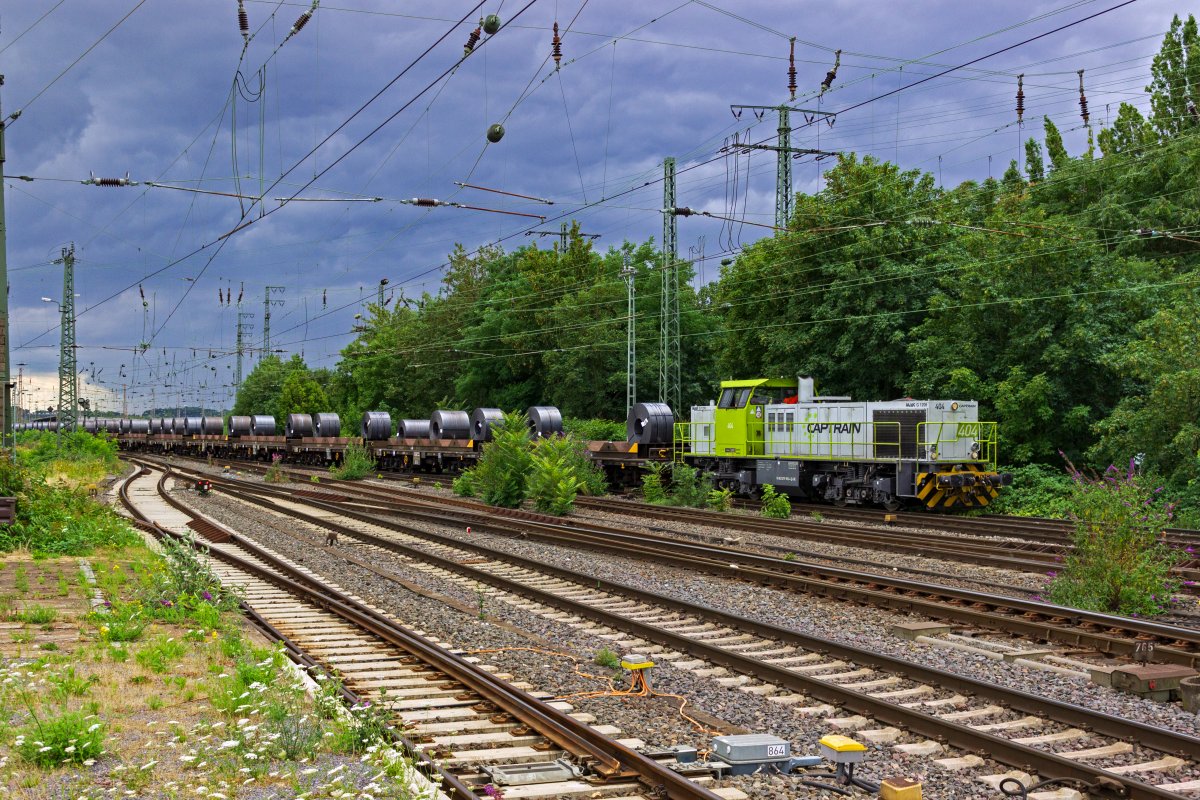 Die blau-graue Lackierung verraten, dass hinter 1275 818 von LOCON eine ehemalige RBH-Lok steckt. Fernab des ersten Einsatzgebiets ist die Lok am 14.07.21 in Berlin unterwegs.