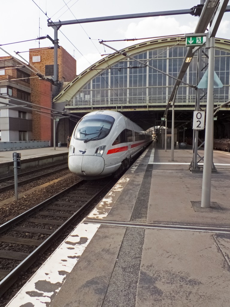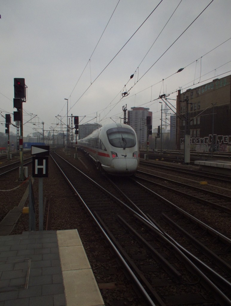 Auch ein Zug, der ans Wasser fährt: 605 003 und 605 018 verlassen am 15.5.14 als ICE nach Arhus (003), beziehungsweise Kopenhagen (018) den Berliner Ostbahnhof.