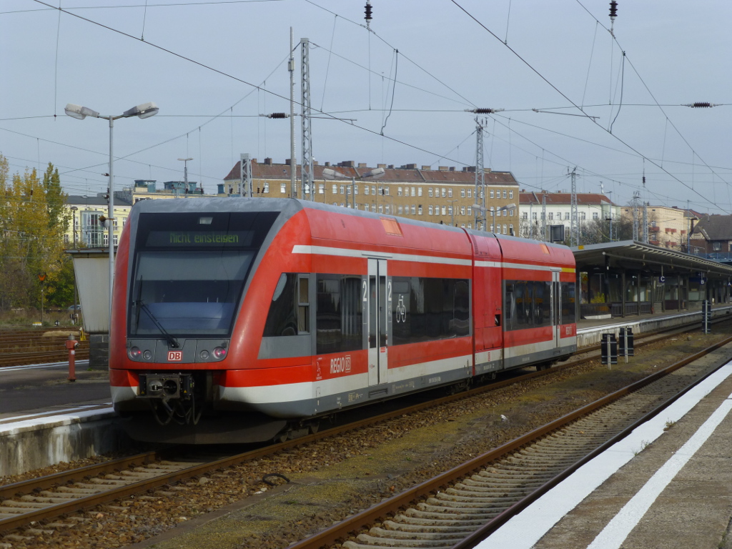 Auch für die Triebwagen der Baureihe 646 geht es in Nordostdeutschland langsam bergab. Die Linie RB12, die 646 030 (einer der polentauglichen 646er, das Przewozy Regionalne-Schild in der Frontscheibe war allerdings abgedeckt), geht 2015 an die NEB und der RE6 durch die Prignitz wird ab 2016 mit 648er aus NRW bedient. Am 4.6. war das Einrücken eines 646 ins alte BW Lichtenberg allerdings noch ein alltäglicher Vorgang.