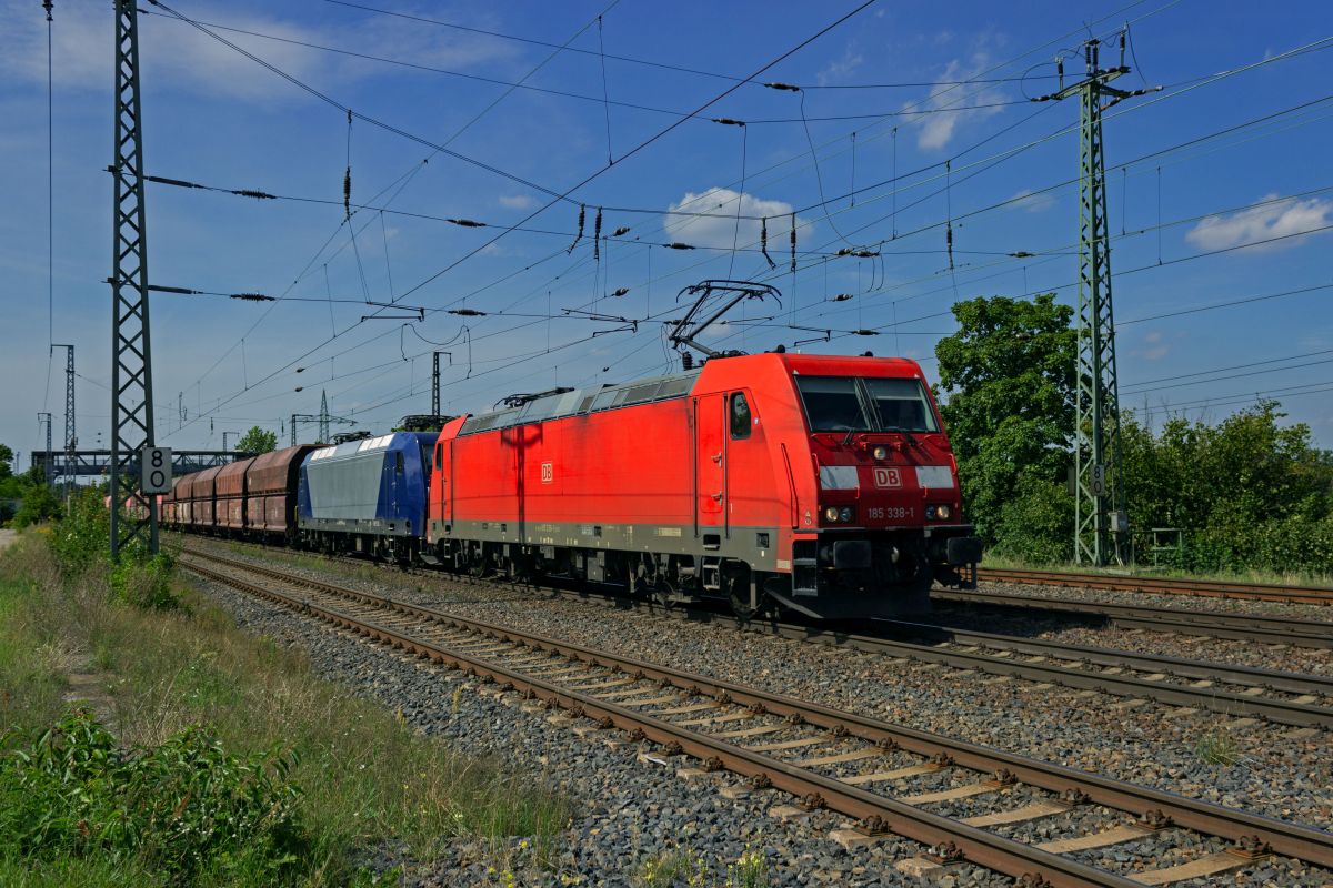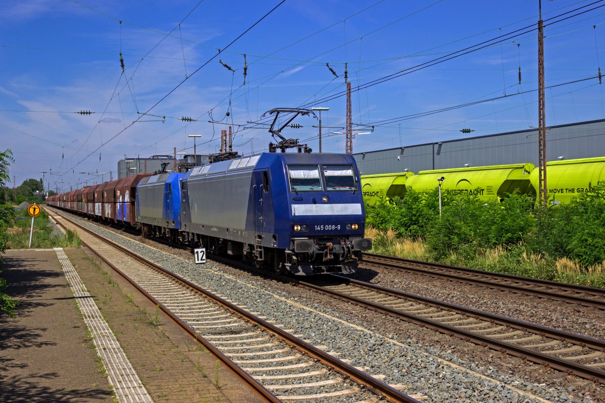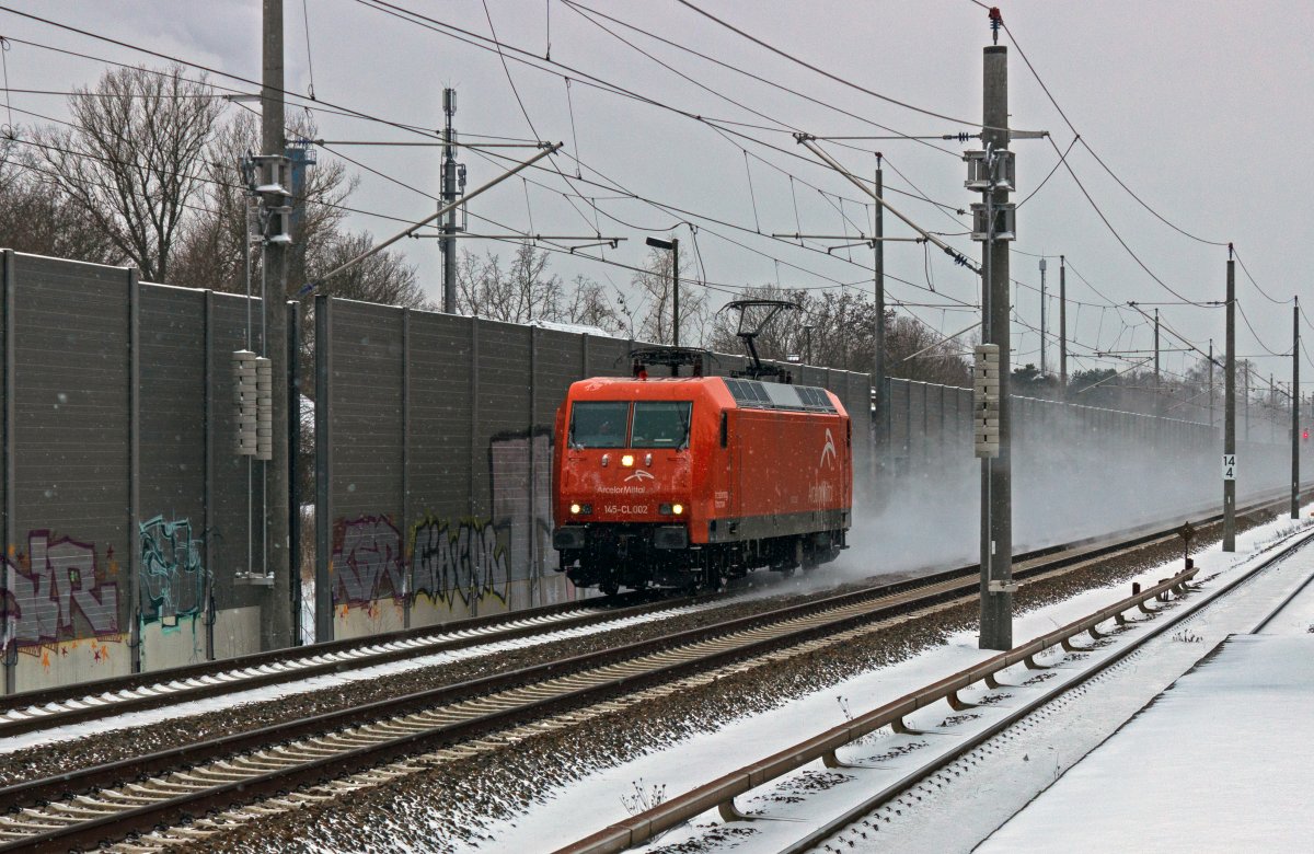 145 083, die von PRESS intern als 145 023 bezeichnet wird, wirbt seit einigen Jahren für die Schmalspurbahn "Rasender Roland" auf Rügen. Mit leeren Autotransportwagen am Haken ist die Lok am 17.05.23 auf dem Weg in Richtung Magdeburg.