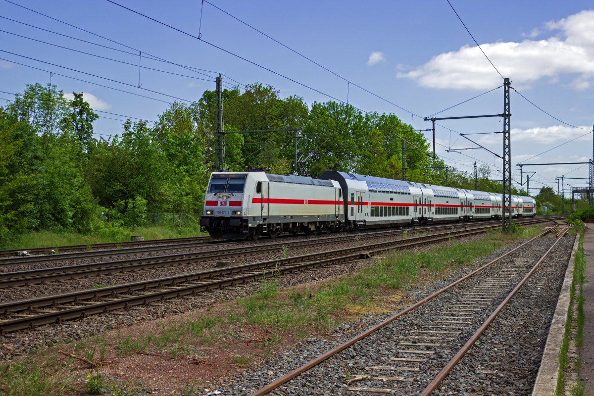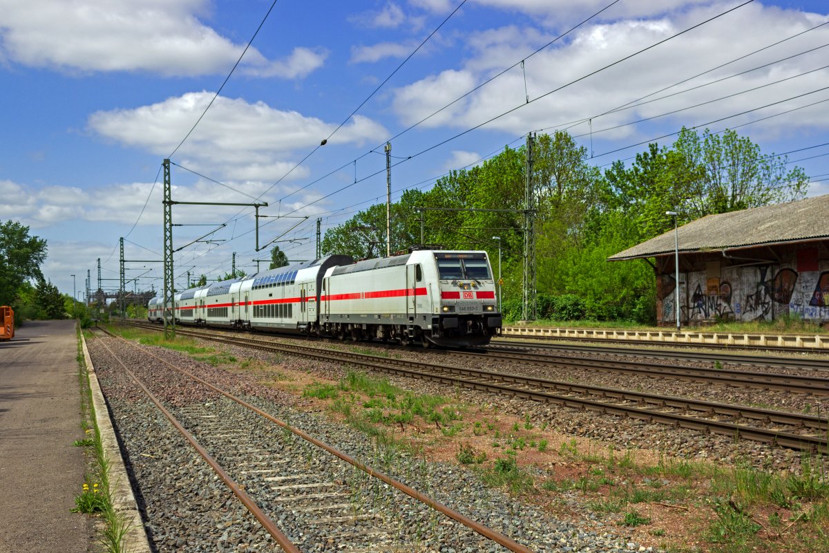 Auf dem Weg in Richtung Hannover durchfährt 146 576 mit ihrem InterCity den Bahnhof von Niederndodeleben.