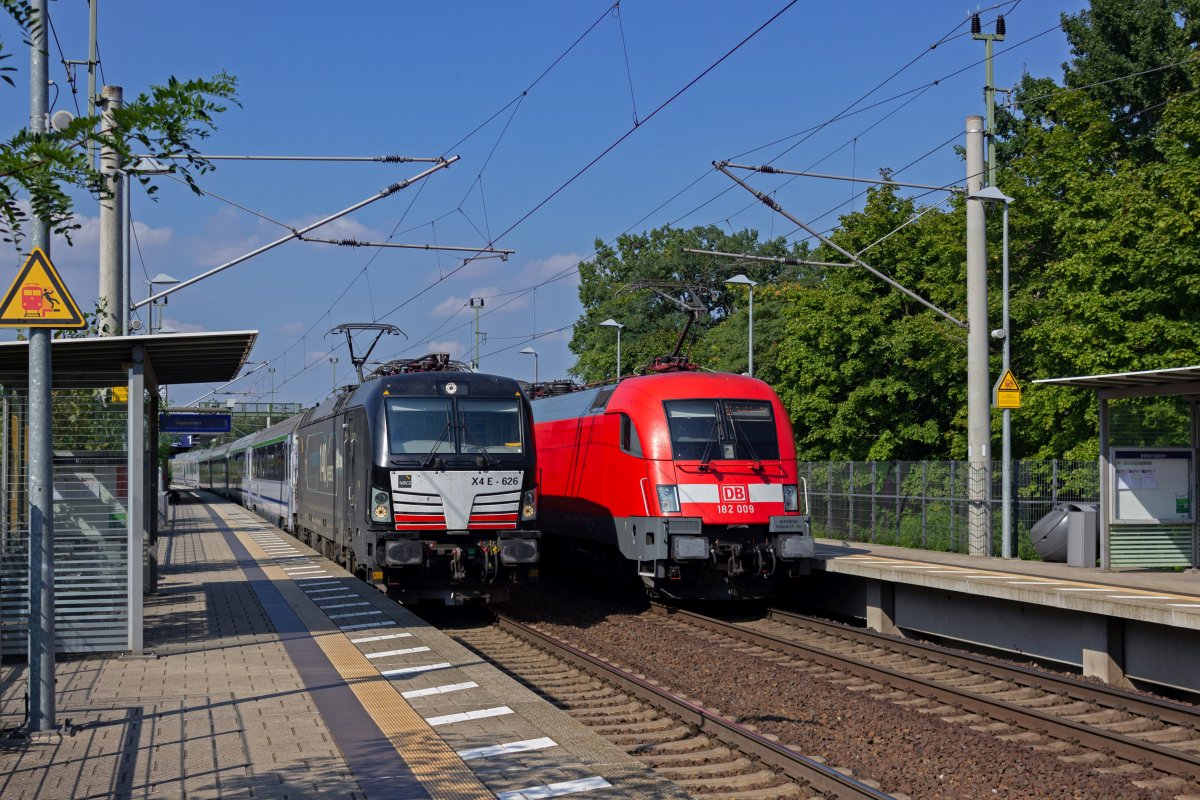 Mit einem RE nach Frankfurt hat 182 007 vor kurzem den Haltepunkt Fangschleuse verlassen, der im Gegensatz zu den anderen kleineren Zwischenstationen zwischen Erkner und Frankfurt von jedem RE1 bedient wird.