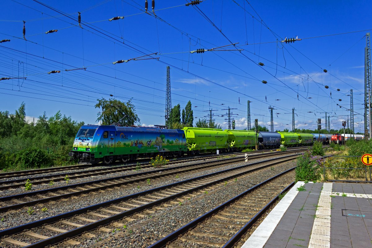 Nach über einer Stunde der erste Güterzug (mit Heimatgefühlen): HGK 2061 (91 80 6185 603-8 D-HGK) mit Kesselwagen in Schönefeld.