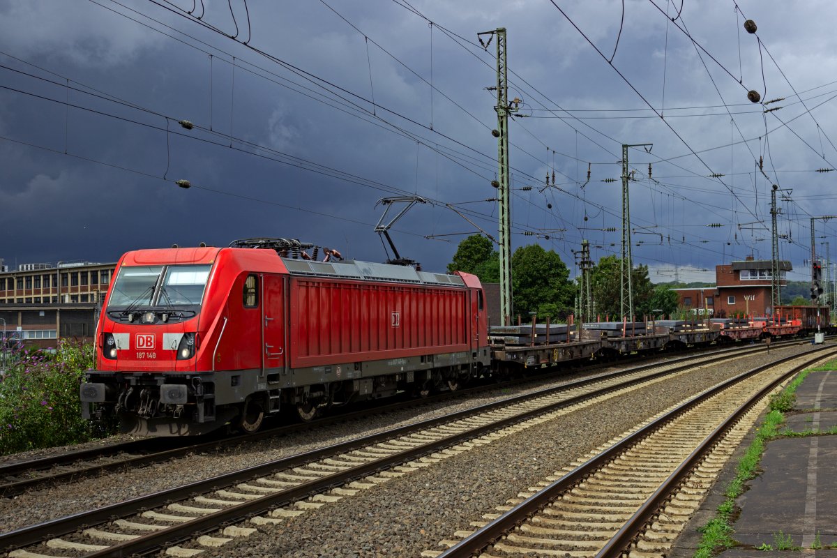 Die langfristig von Railpool an die Salzburger Eisenbahn (SETG) vermietete 187 302 muss mit ihrem Güterzug einen Zwischenhalt in Niederndodeleben einlegen, um einen Zug des Fernverkehrs überholen zu lassen.