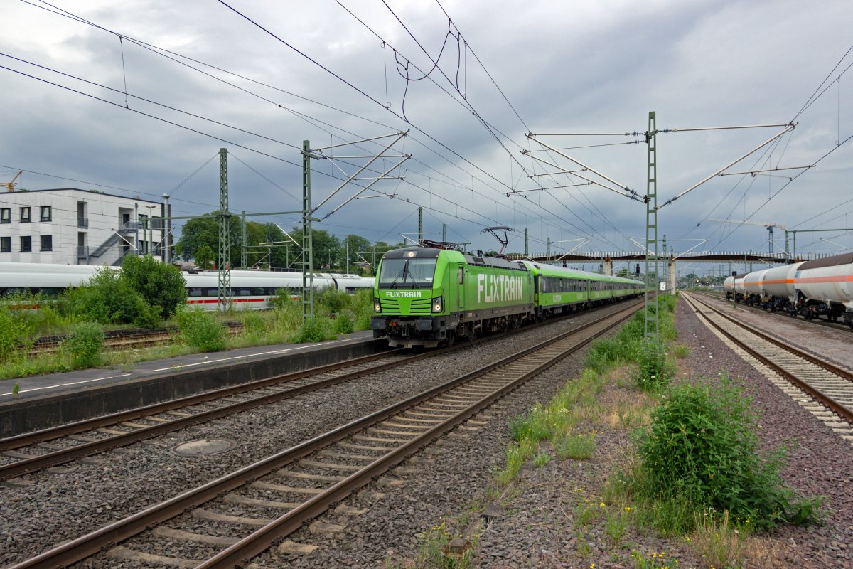 Der Flixtrain von Köln nach Berlin wurde am 08.07.2021 von 193 861 bespannt, die hier gerade mit dem Zug in den Bahnhof Opladen einfährt, wo der Zug in Richtung Hilden abbiegt. Leon Rosendahl