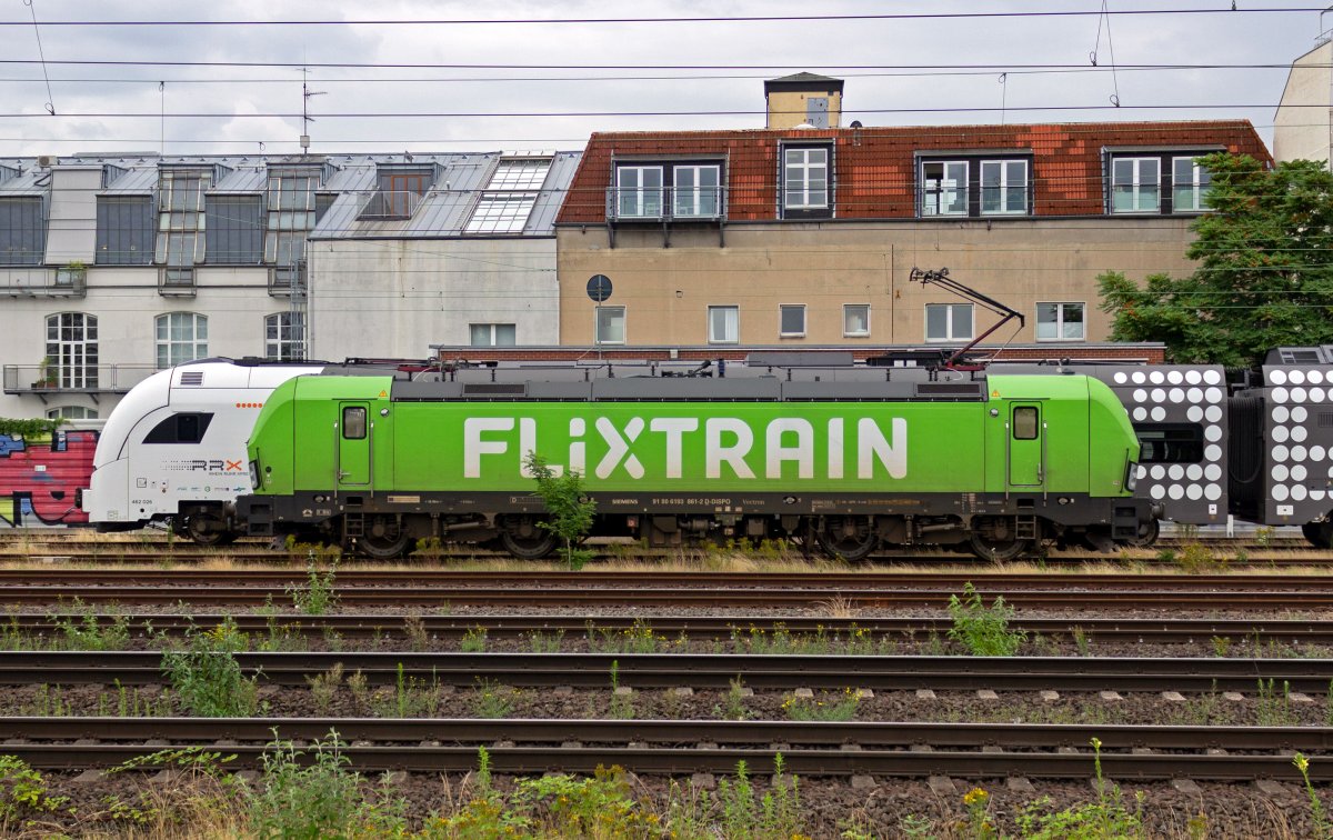 Zwei erfolgreiche Produkte des Siemens-Konzerns nebeneinander: Während der Vectron 193 861 gerade umsetzt, um einen Flixtrain in Richtung Berlin zu bespannen, wartet der Desiro HC 462 026 im Hintergrund als Reservefahrzeug auf neue Aufgaben. Leon Rosendahl
