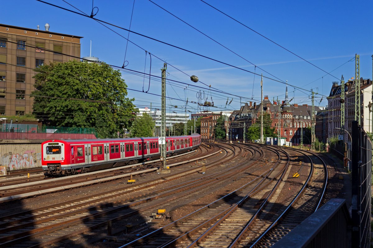 Die Hamburger Linie S11 nutzt den Tiefbahnhof in Altona als Spitzkehre, sodass diese Züge im Abstand weniger Minuten wieder aus dem Untergrund auftauchen. So auch diese Garnitur aus zwei 472.