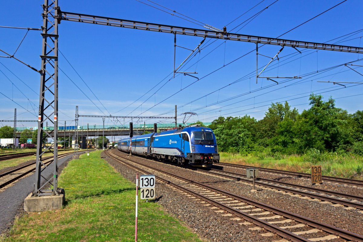 Mit den RailJet 257 nach Graz nähert sich 1216 230 am 24.04.2024 dem nächsten Halt Brno hlavní nádraží.