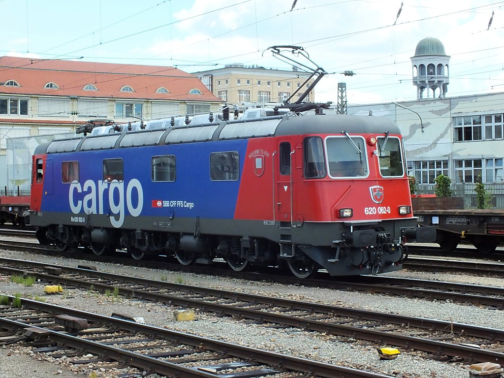 Re6/6 11620 steht hier mit einem Ganzzug aus "Holcim"-Wagen im Güterbereich des Bahnhofes Singen (Htw)