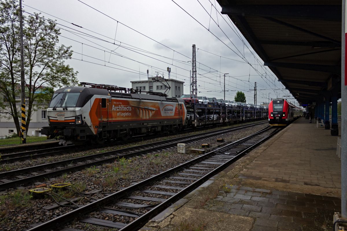 Wie in Tschechien beschafft auch die slowakische Staatsbahn ŽSSK Vectron-Lokomotiven für den internationalen Schnellzugdienst. 383 106 erreicht am 23.04.24 mit EC 124 aus Puchov Praha-Libeň und hat damit den größten Teil der Reise hinter sich.