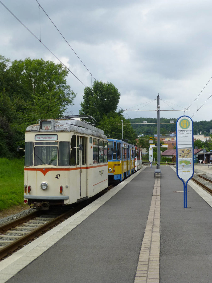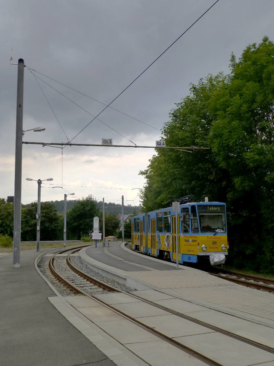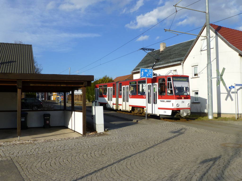 KT4D Nr. 305 in den Farben der Gothaer Straßenbahn in der Bahnhofswendeschleife, 11.2.16.