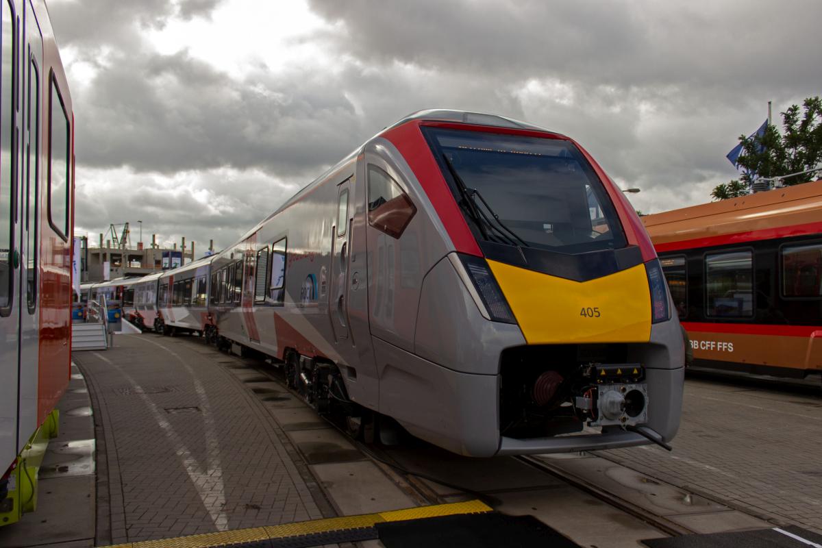 Für den Nahverkehr in Wales liefert Stadler trimodale FLIRT-Triebwagen der Class 756. Ein Exemplar, 756102, war 2022 auf der InnoTrans.